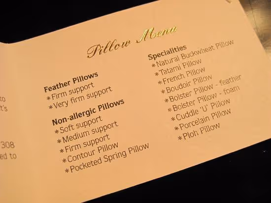 Pillow menu by Conrad Centennial Singapore. Photography by Trip Advisor